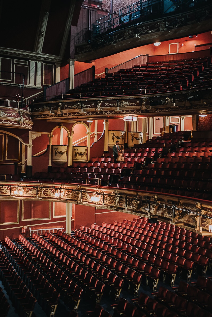 When planning our wedding we thought it would be a great idea to have the ‘order of service’ in a mock programme/playbill booklet that included a bit about our story, pictures of “The Cast” (our families and wedding party) and of course, some photos of us in a theatre! As Sunderland Empire is quite close to us and we have seen a lot of shows there, including our first show together, The Lion King, we decided it would be great to have the photos done there. We spoke to the team at Sunderland Empire (who are always so kind and accommodating) and had our besties Sarah-Jane and Simon (From The Smiths Photography) come along one mid-week afternoon after we both blagged some time off work.